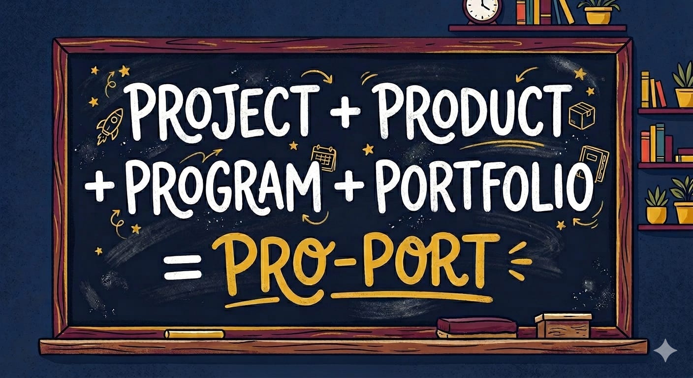 I plan to use “pro-port” in this newsletter and see how it feels. At minimum, it’s a small but helpful tool for my writing. Helping to untangle the distinction between my favorite subject, “program management,” and its parent discipline.