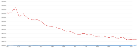 Finally, the historical word “proport” is used at 0.0000002% frequency and “pro-port) at 0.000000005% frequency. Essentially, these words are non-existent in the current texts.